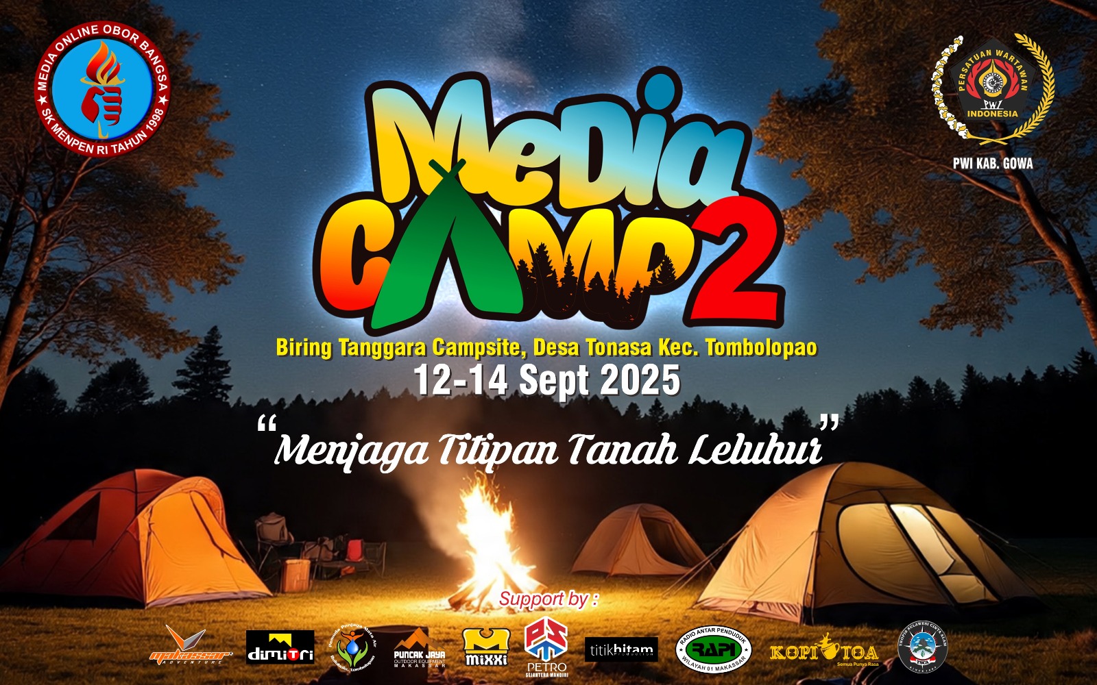 Rapormerah.com – Media oborBangsa kembali menghadirkan kegiatan tahunan Media Camp 2 yang akan digelar di Bulubulu, Desa Tonasa, Kecamatan Tombolopao, Kabupaten Gowa pada 12–14 September 2025.